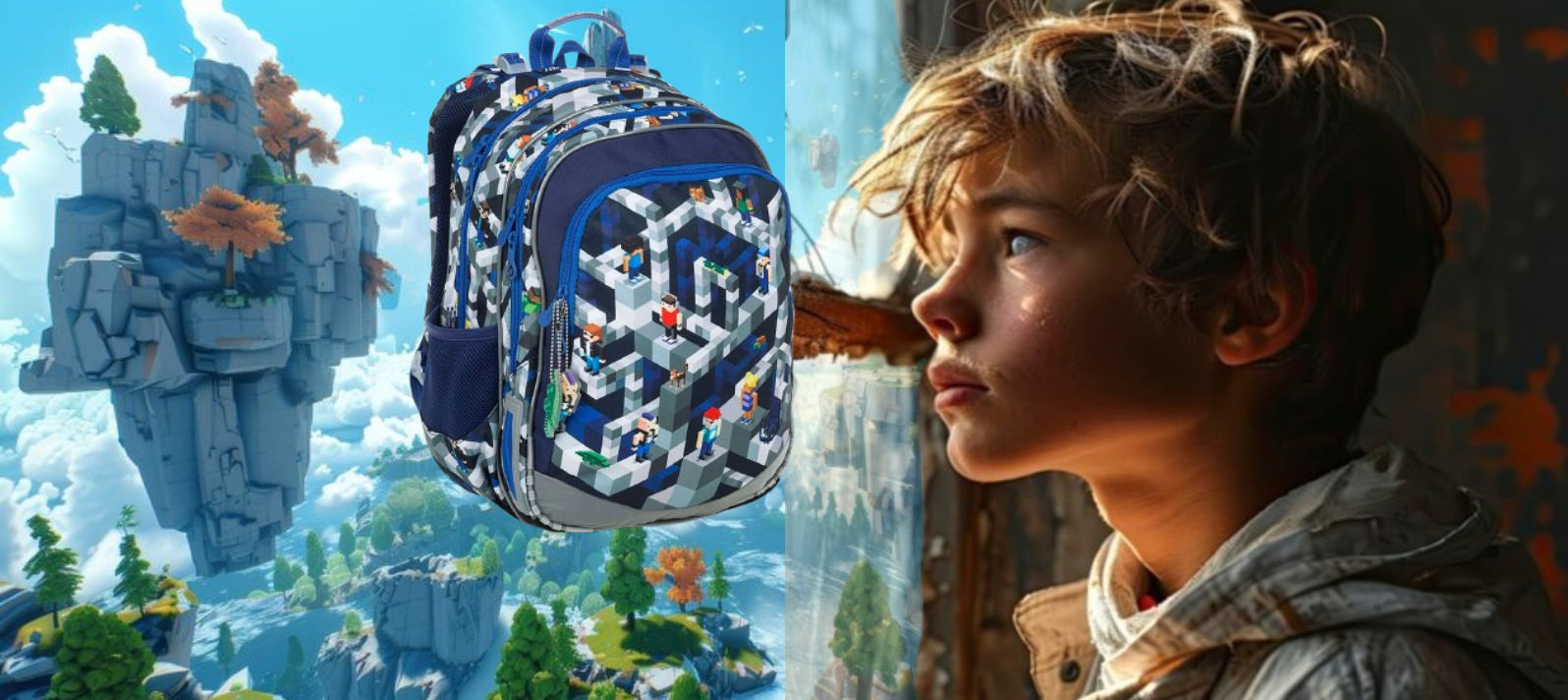 Predstav si, že tvoja cesta do školy je ako výstup po nekonečných blokoch poznania – každý schodík ťa vedie vyššie, k cieľom, ktoré si sám vytváraš. Tento batoh je tvojou osobnou mapou, v ktorej sú uložené nielen zošity a desiata, ale aj sny, odvaha a túžba rásť 🌟🗺️.