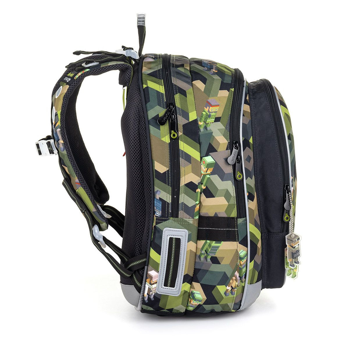 TOPGAL 🎒🏁 MIRA 20046 📘🧠 školský batoh - striedaj bloky za knihy - zelený pixel do školy s nami