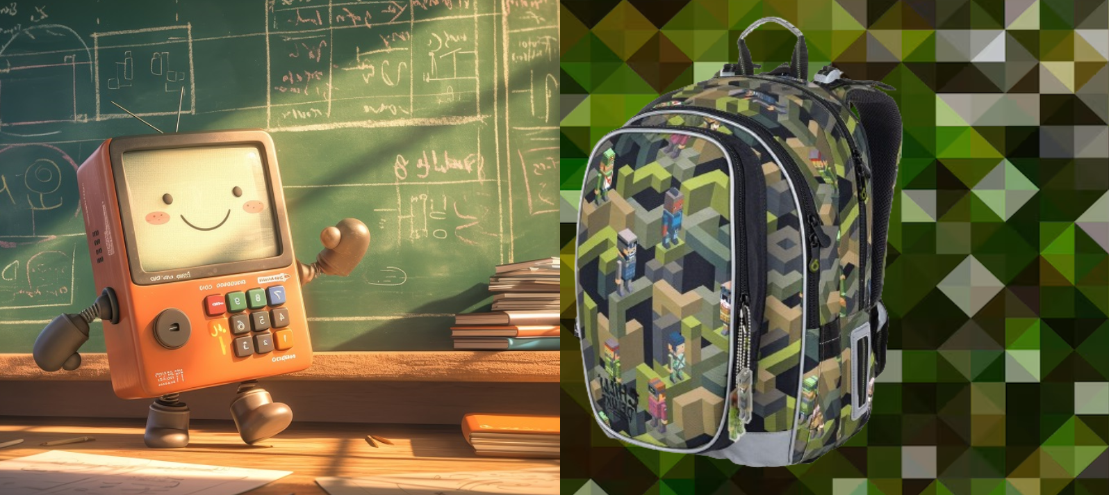 S každým krokom sa tvoj malý školák vydáva na cestu, kde geometrické štruktúry evokujú bludiská myšlienok, pixelové chodníky vedú k riešeniam a každá knížka, ktorú si vloží do batohu, sa stáva kúskom jeho osobného levelu poznania. 💚🧱📚