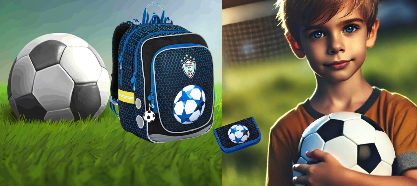 Nech futbalová lopta na batohu a peračníku pripomína, že sny sú tu na to, aby sa kopli rovno do brány života. ⚽🌟
