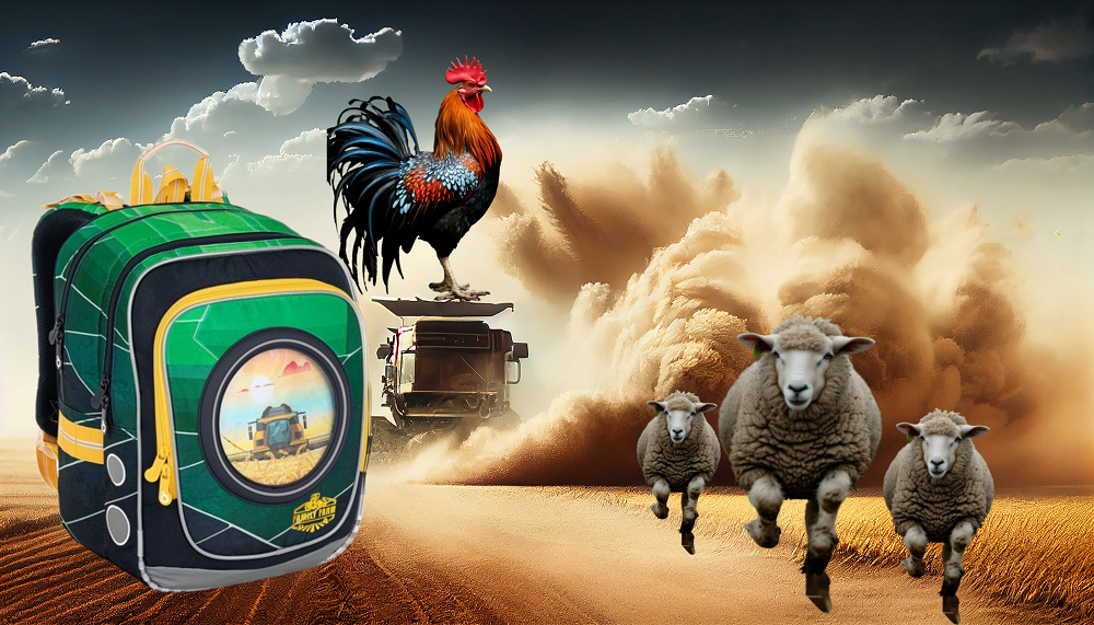 🎨 Farby batohu pripomínajú úrodné polia, zelené lány a zlatisté klasy v západe slnka – je to obraz prírody na chrbte malého školáka. Pripomína mu slobodu a dobrodružstvo, ale aj zodpovednosť farmára, ktorý vie, že poznanie je ako pôda – treba ju obrabať, polievať a zveľaďovať. 💧🌾