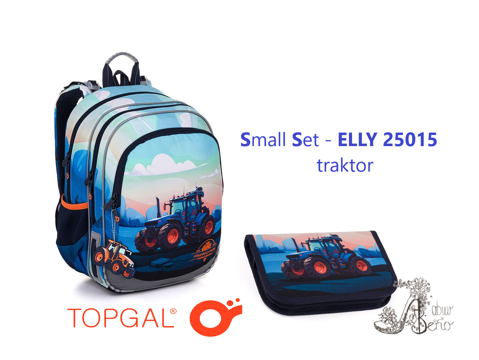 Tento školský set TOPGAL ELLY 25015 prinesie vášmu malému farmárovi radosť z každého školského dňa. Batoh je ako verný traktor na poli – silný, spoľahlivý a pripravený niesť všetko potrebné. S nádherným motívom traktora na pozadí pastelových farieb pripomínajúcich východ slnka nad políčkom, tento set kombinuje funkčnosť s umením.