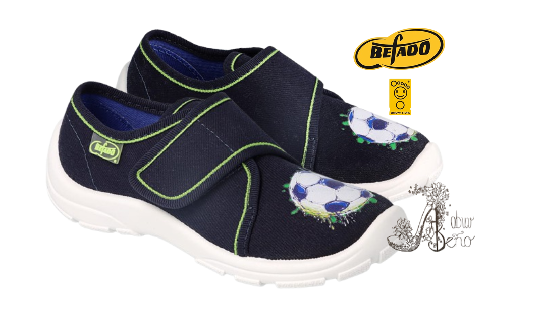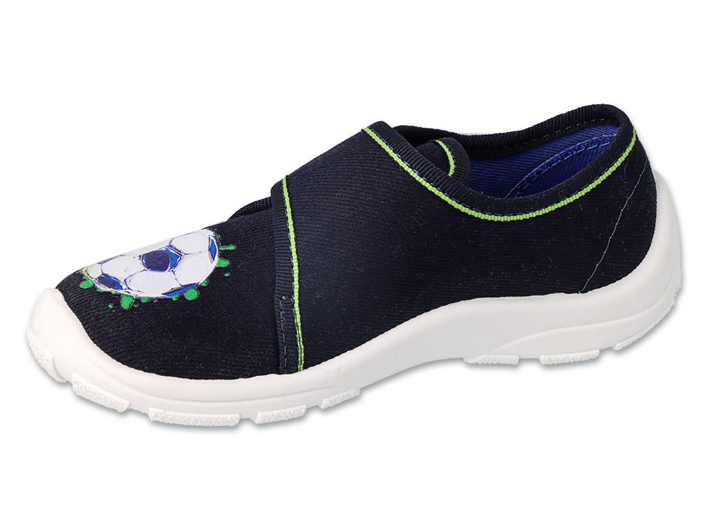 BEFADO - chlapčenské prezuvky tmavomodré s futbalovou loptou – pre detské kroky, ktoré sa vznášajú ako športová hviezda⚽✨