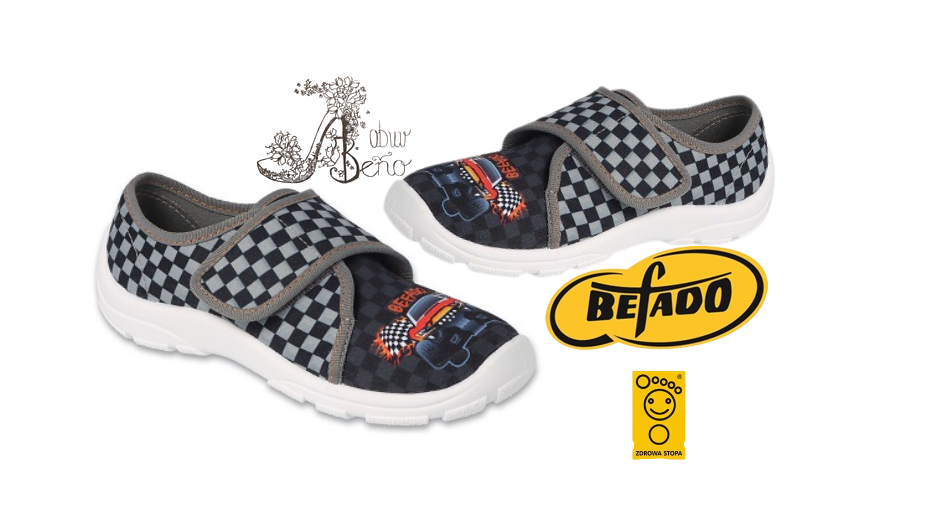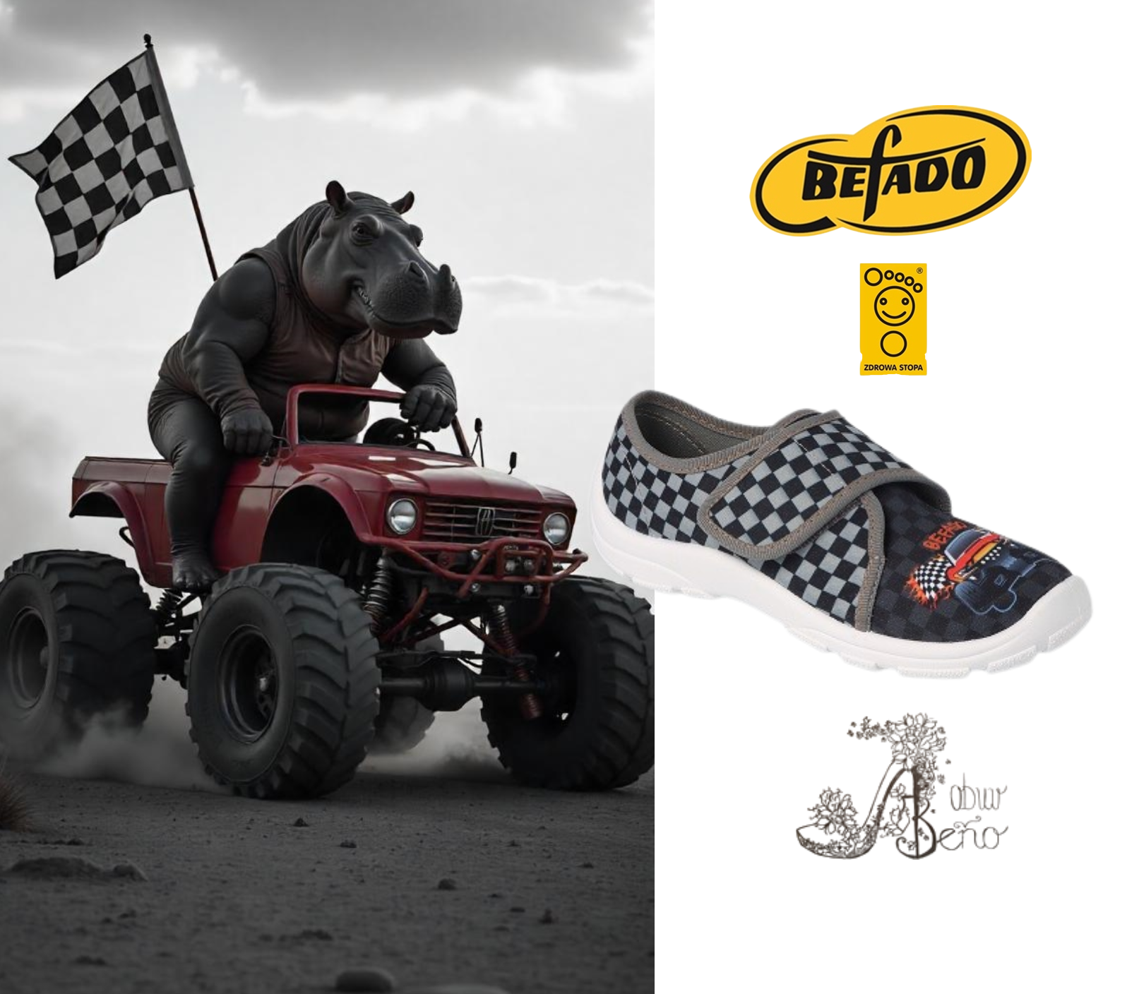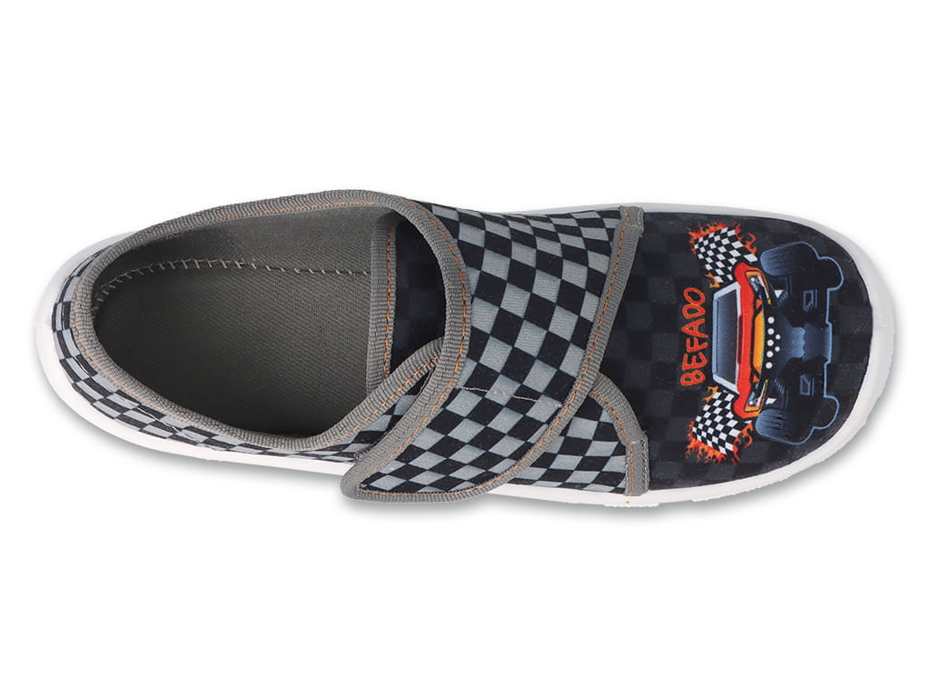 BEFADO-chlapčenské prezuvky v sivo-čiernej kombinácii, s šachovnicovou vlajkou a silou monster trucka, ako hroch na ceste🚗🖤