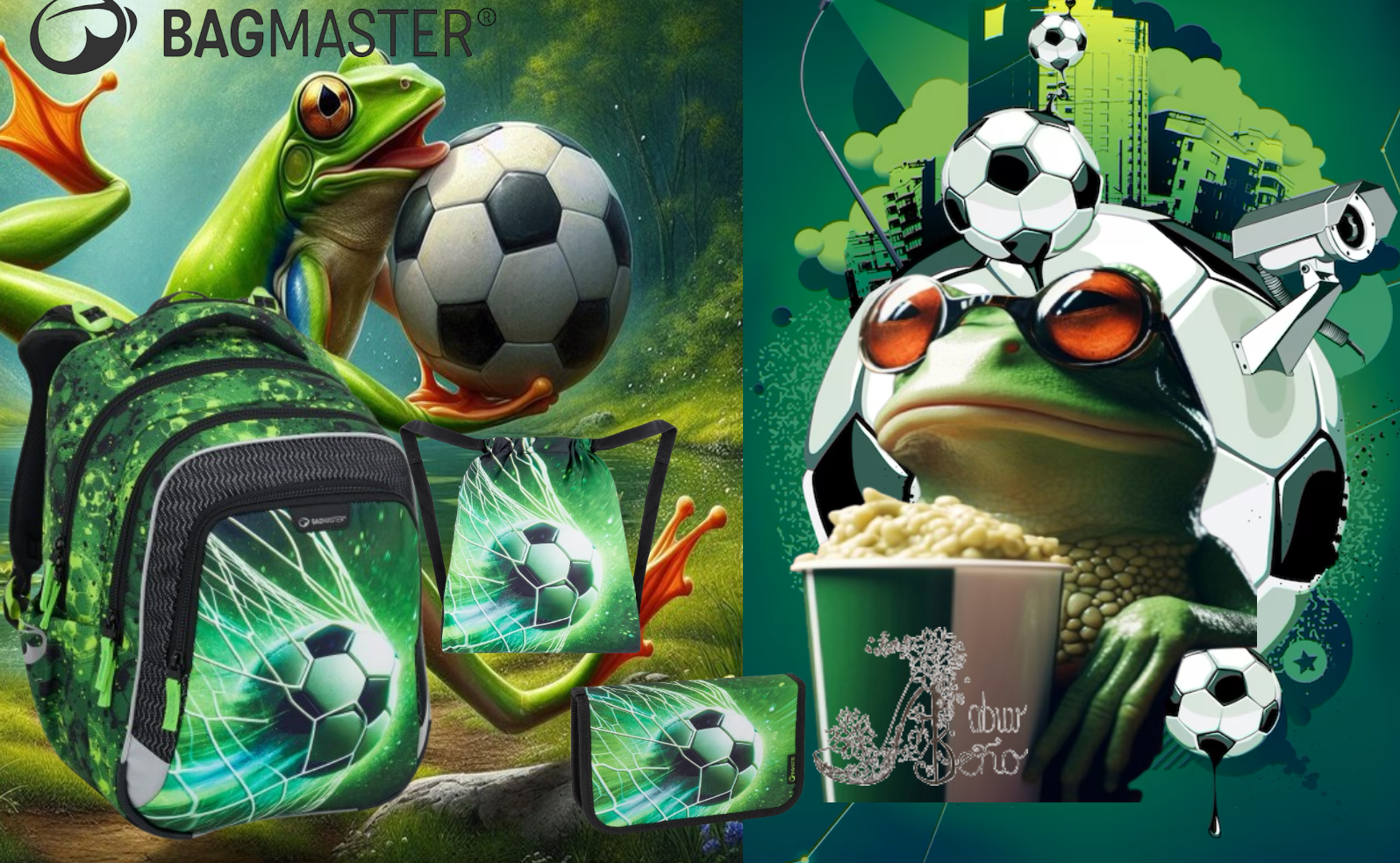 Tento školský set je oveľa viac než len výbava – je to štartovací výkop do sveta vedomostí, odvahy a sebavedomia. Obsahuje futbalový batoh, futbalový peračník a futbalové vrecko, všetky zladené do žiarivej zeleno-čiernej symfónie, kde sa stretáva športová energia a hravý dizajn so žabkami ako roztopašnými komentátormi každého tvojho školského dňa. 🐸⚽