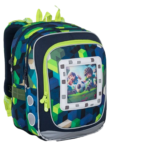 Hlavným hrdinom je školský batoh – pevný, ergonomický, s dôrazom na precízne prepracované šitie, ktoré vydrží každodenné výpravy za vedomosťami aj po futbalovom ihrisku. Predné vrecko zdobí obrázok športovcov – dvoch chlapcov v zápale hry, čo evokuje radosť z pohybu a priateľstva. Ich odhodlanie je zrkadlom toho, čo v sebe nosí každý školák – túžbu po úspechu, či už na trávniku, alebo v lavici. 🧠⚽📘