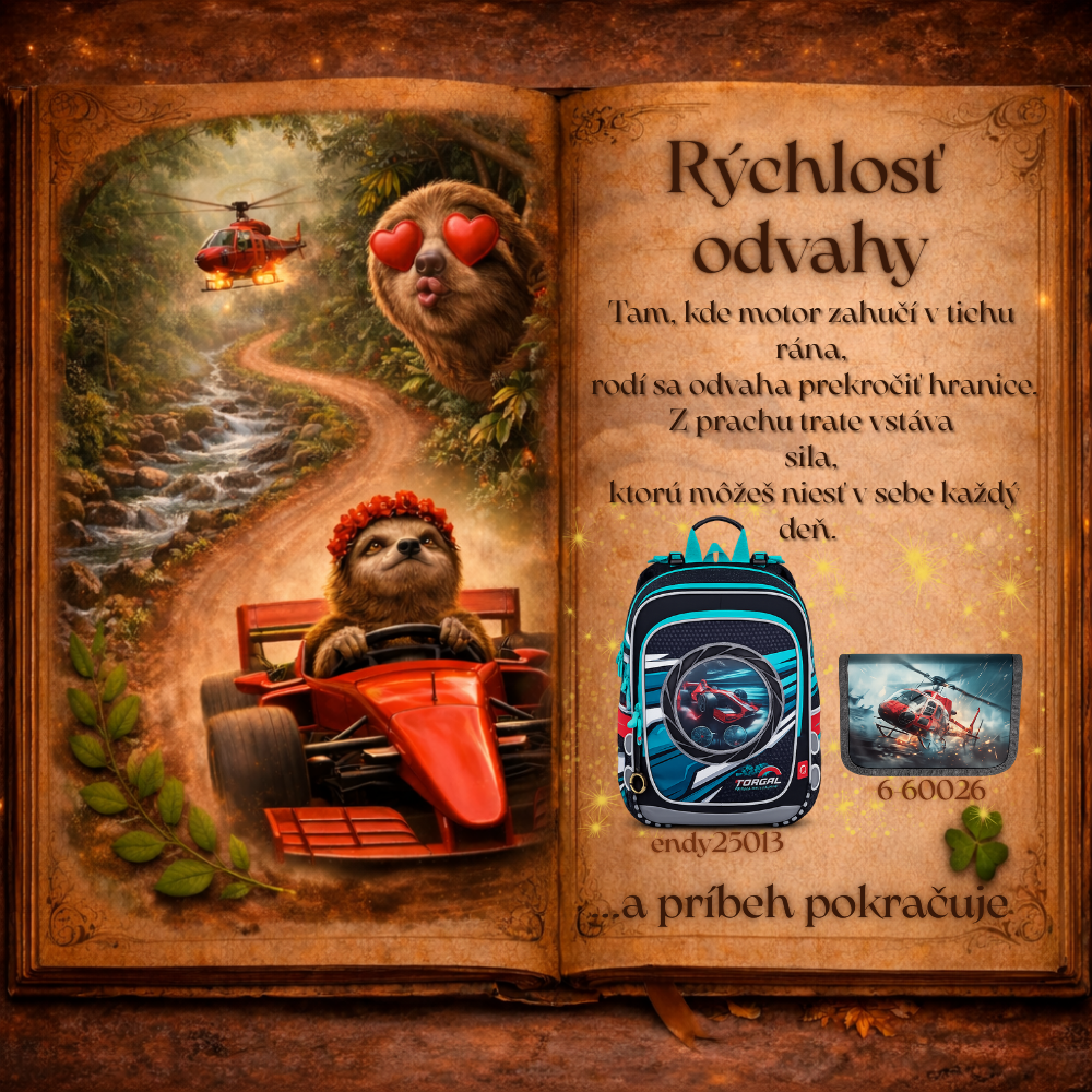Každý školský deň je ako nová jazda po ceste plnej objavov. Niekedy pokojná, inokedy rýchla ako blesk – ale vždy vedie k novým vedomostiam a zážitkom. Set Rýchlosť odvahy je pripravený byť spoľahlivým spoločníkom na tejto ceste. Batoh, peračník aj doplnky spolu vytvárajú výbavu, ktorá drží krok s detskou energiou, fantáziou a chuťou objavovať svet. Tak ako pretekársky stroj potrebuje silný motor a pevný smer, aj školák potrebuje výbavu, ktorá ho podporí na každom kroku – od prvých písmen až po veľké objavy. A keď ráno zazvoní školský zvonček, začína ďalšie kolo dobrodružstva. Kolo, v ktorom sa malé kroky menia na veľké sny a každý nový deň je ďalším šprintom za poznaním. 🌟