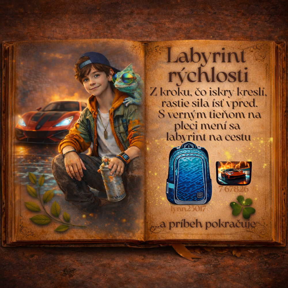 Každý deň je ako nová cesta, ktorá vedie cez množstvo zákrut, výziev a dobrodružstiev. Set Labyrint rýchlosti je stvorený pre chlapcov, ktorí milujú pohyb, dynamiku a objavovanie nových ciest. Modré línie na batohu pripomínajú digitálny labyrint, v ktorom sa rýchlosť stretáva s odvahou a fantáziou. Tak ako pretekár hľadá správnu stopu na dráhe, aj malý školák objavuje svoju cestu medzi písmenami, číslami a novými vedomosťami. Batoh, peračník aj doplnky spolu vytvárajú výbavu pripravenú na každý školský deň – na hodiny plné objavovania, priateľstiev a malých víťazstiev. Každý krok do školy sa tak mení na dobrodružnú jazdu za poznaním.