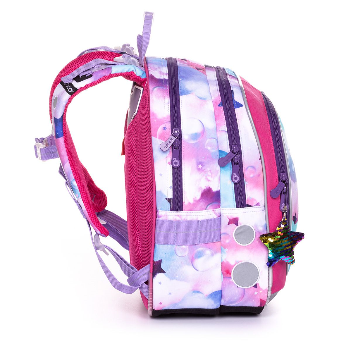 ✨ Každý detail batohu je precízne prepracovaný – od ergonomicky tvarovaných ramenných popruhov cez mäkký chrbtový systém až po priestranné komory, ktoré uchovajú všetky poklady školského dňa. Trblietavé hviezdy a dúhový lesk sú ako iskry detskej fantázie – rozžiaria každé ráno a spríjemnia každé popoludnie.