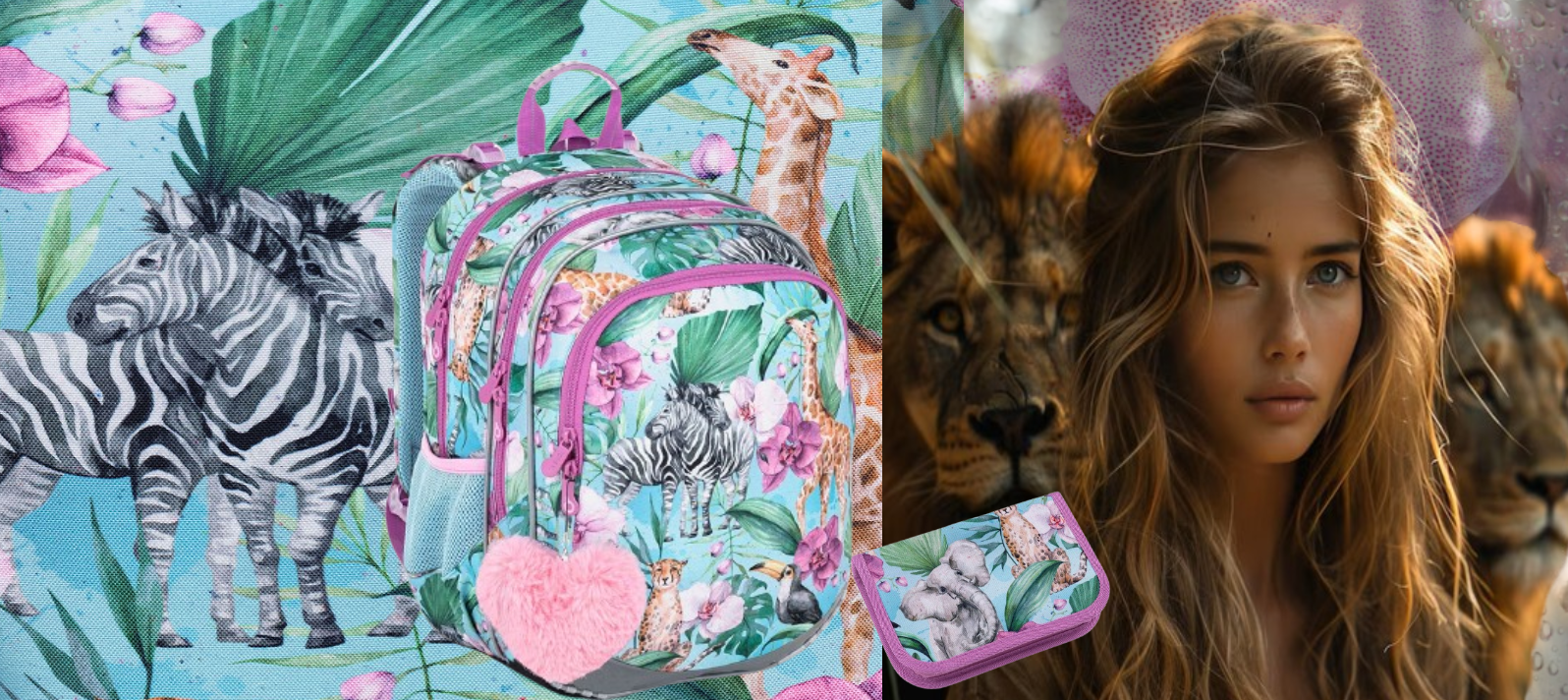 TOPGAL 🎒🎀🦓 SmallSet - ELLY 23004 🎒🎀🦓 vzrušujúca safari vedomostí - štýlový set pre dievčatká s príveskom ružového srdiečka