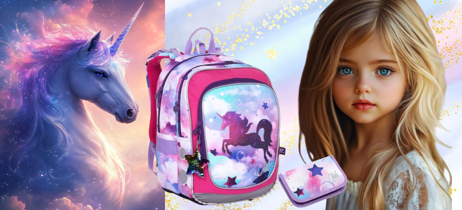 🦄 Obrázok jednorožca, ktorý si pridala ako doplnok, nie je súčasťou batohu – no výborne podčiarkuje čarovnú atmosféru celého setu. Tento ilustratívny prvok, spolu s obrazom krásneho dievčatka so žiarivými očami a nežnou aurou, slúži ako vizuálne zosobnenie samotnej majiteľky setu – princeznej, ktorej sny majú krídla. 👑💫