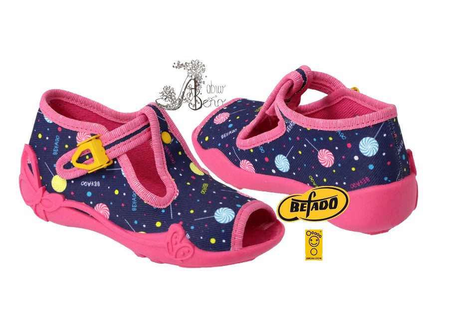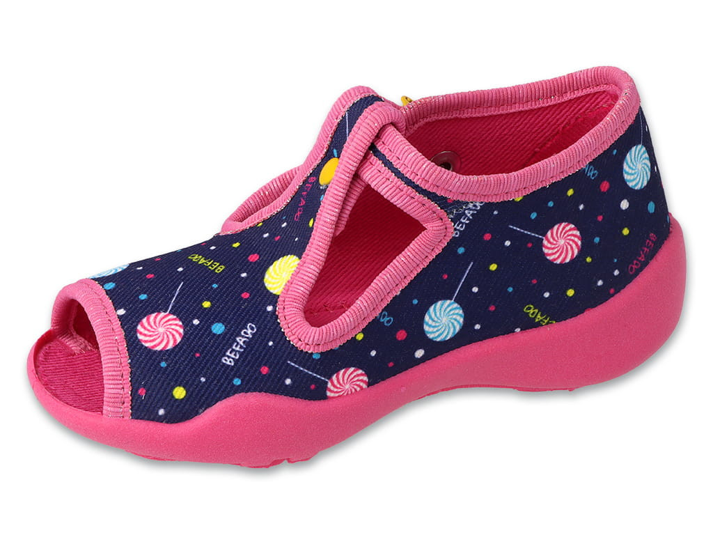 Dievčenské prezuvky BEFADO, sladké lízatko zdôrazňujú sladkosť a radosť z každého kroku v živote dievčat. Podobne ako sladké lízatko, ktoré prináša potešenie a chuť do života, BEFADO prezuvky dodávajú dievčatám pocit pohodlia a spokojnosti, ako by kráčali po oblakoch. Sú to symboly veselosti a bezstarostnosti, ktoré vytvárajú rozprávkovú atmosféru a povzbudzujú dievčatá, aby si užívali každý okamih a prežívali svoje vlastné sladké dobrodružstvá.