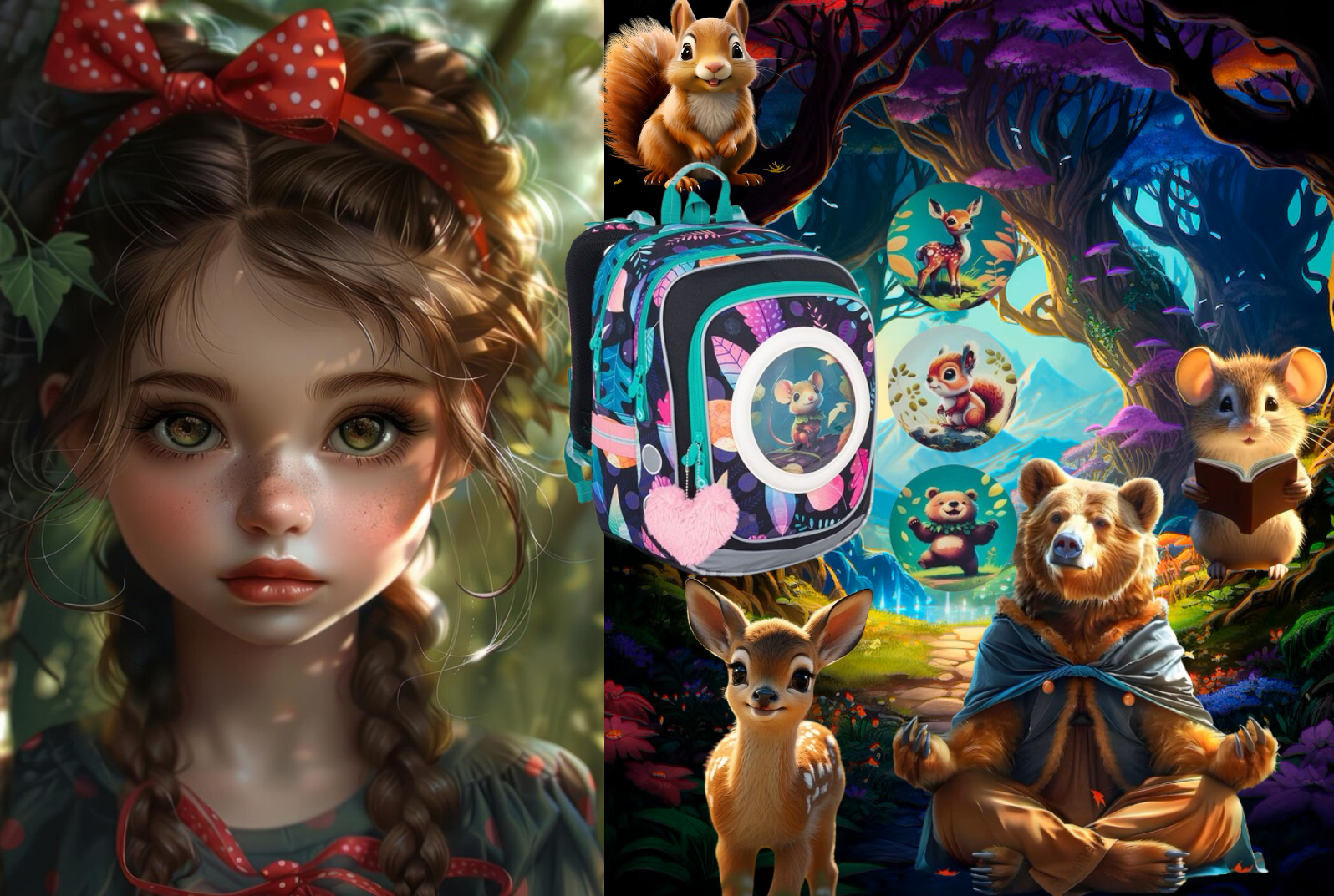 S batohom „Lesné kamarátky“ je každé ráno plné očakávania a každý krok na ceste múdrosti je obklopený láskyplným objatím lesných zvierat. Staňte sa súčasťou tohto krásneho sveta a nechajte svoj deň rozjasniť príbehmi lesných kamarátov.