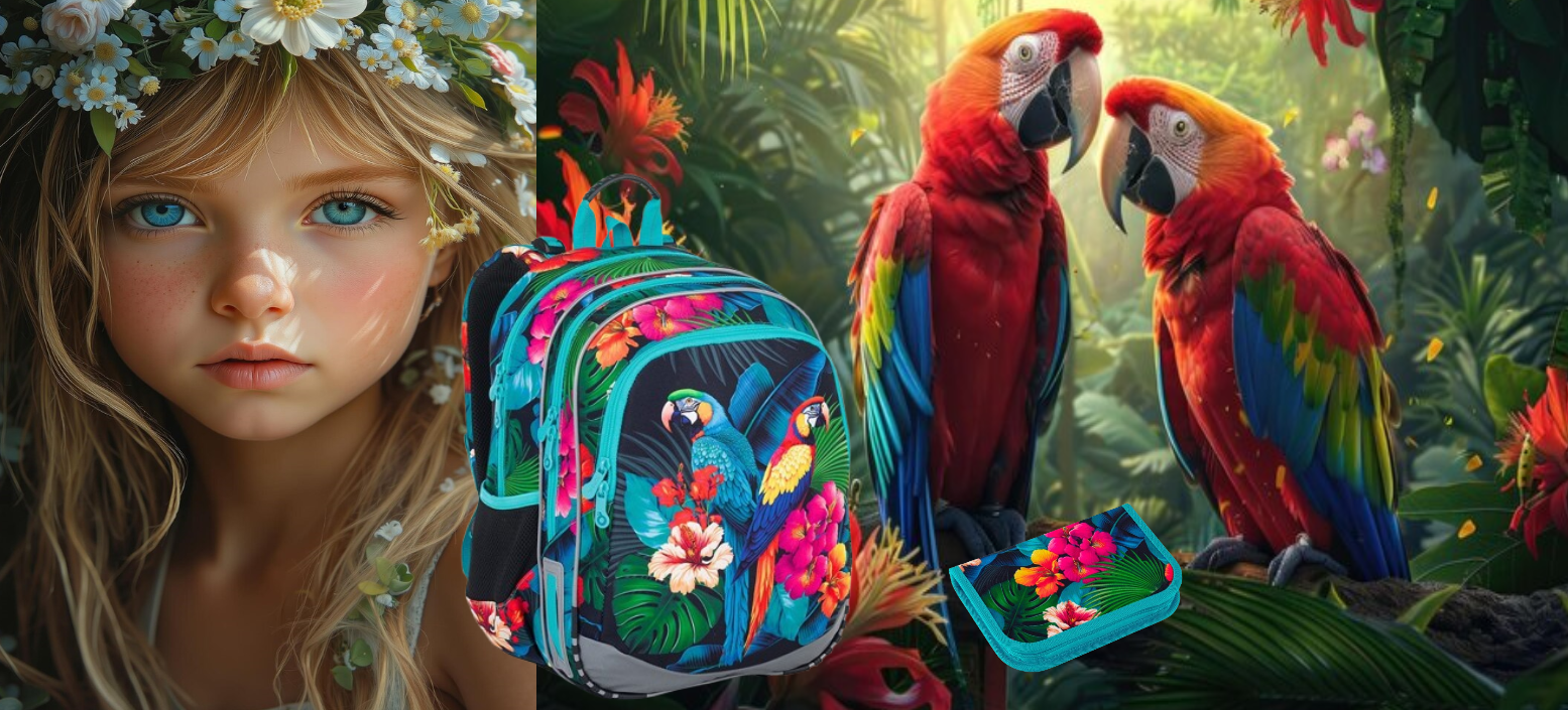 Zamilujte si set, v ktorom sa školská povinnosť mení na potešenie, kde sa batoh stáva pestrofarebným krídlom a peračník nežným kvetom. Nech každé ráno začína spevom papagájov a vôňou tropických kvetov – nech sa učenie stane objavovaním. 🦜📚🌺