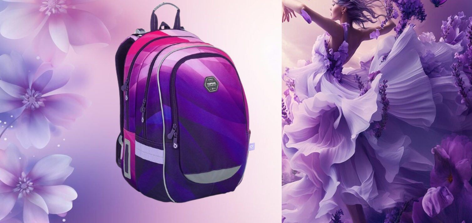 TOPGAL💜CODA 24007 - školský batoh💜fialová dúha snov 🎒 kde víla tanca všíva eleganciu do každého stehu batohu✨