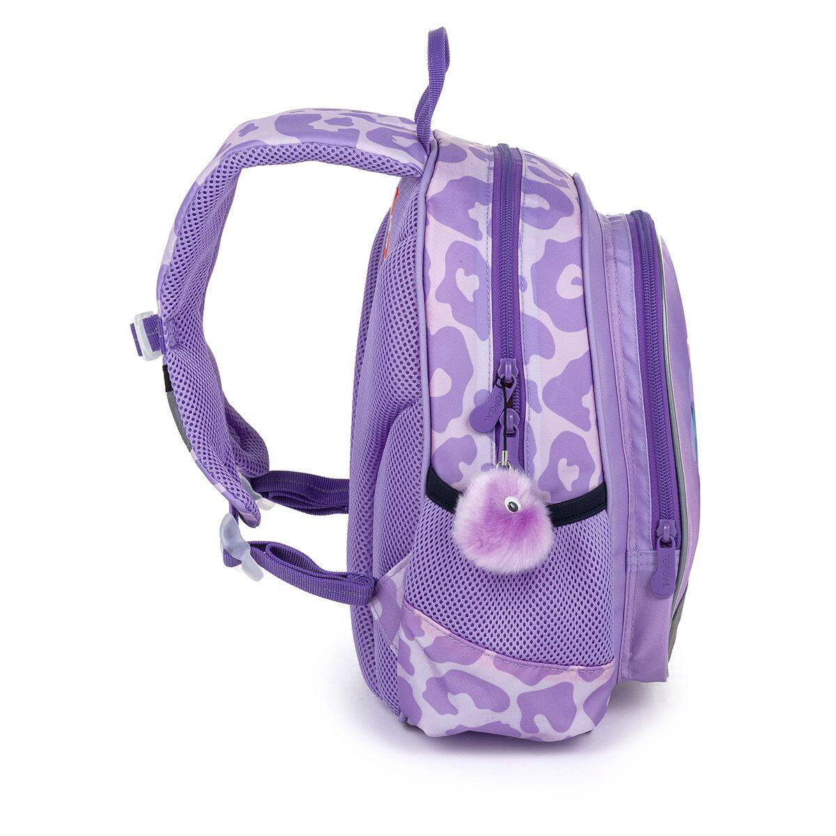 🎒 Fialová farba batôžteka pripomína levanduľové polia v rozkvete – jemná, upokojujúca a zároveň elegantná. Doplnená je vzorom srdiečok a maskáčových tvarov, ktoré dodávajú batôžku nielen dievčenskú rozkošnosť, ale aj nádych originality. Zipsy a vrecká sú navrhnuté tak, aby malá školáčka bez problémov našla všetko potrebné – od obľúbeného plyšáka až po malý poklad ukrytý na dne.