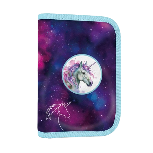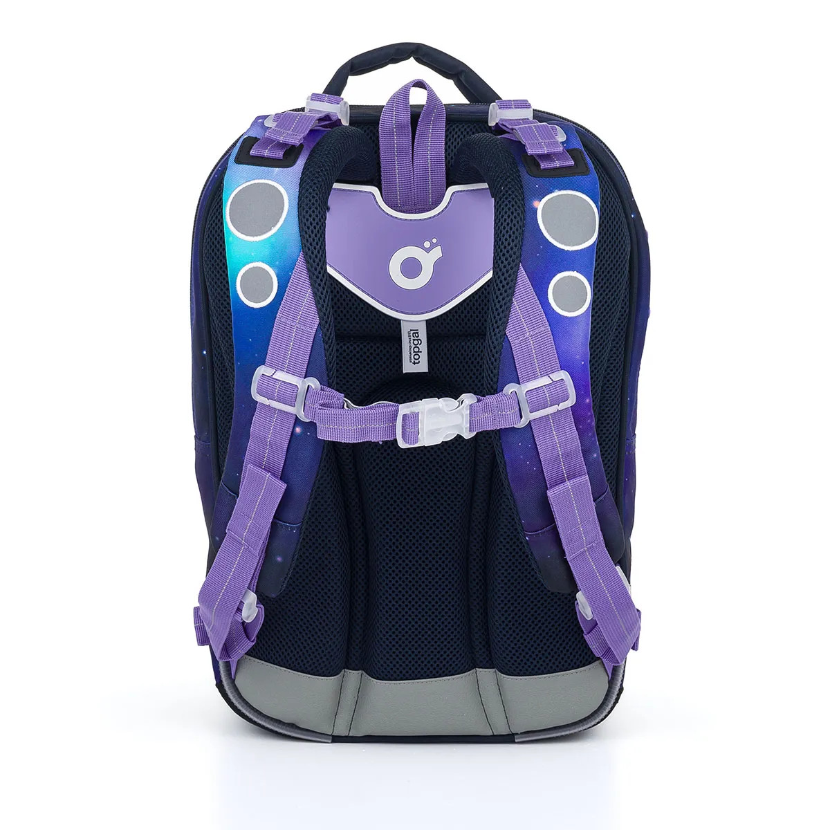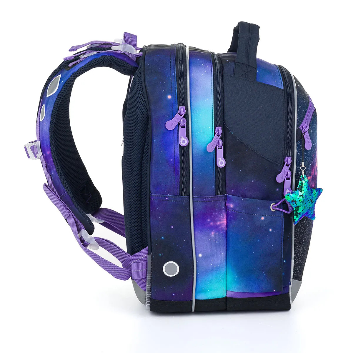 Tento čarovný školský set žiari ako nočná obloha plná tajomstiev. Trblietavé galaxie, hviezdny lesk a mystická elegancia premieňajú každý školský deň na dobrodružstvo vo svete fantázie. Batoh aj doplnky pôsobia ako poklad z vesmírneho kráľovstva – ľahké, pohodlné a pripravené sprevádzať malú princeznú na jej ceste za poznaním.