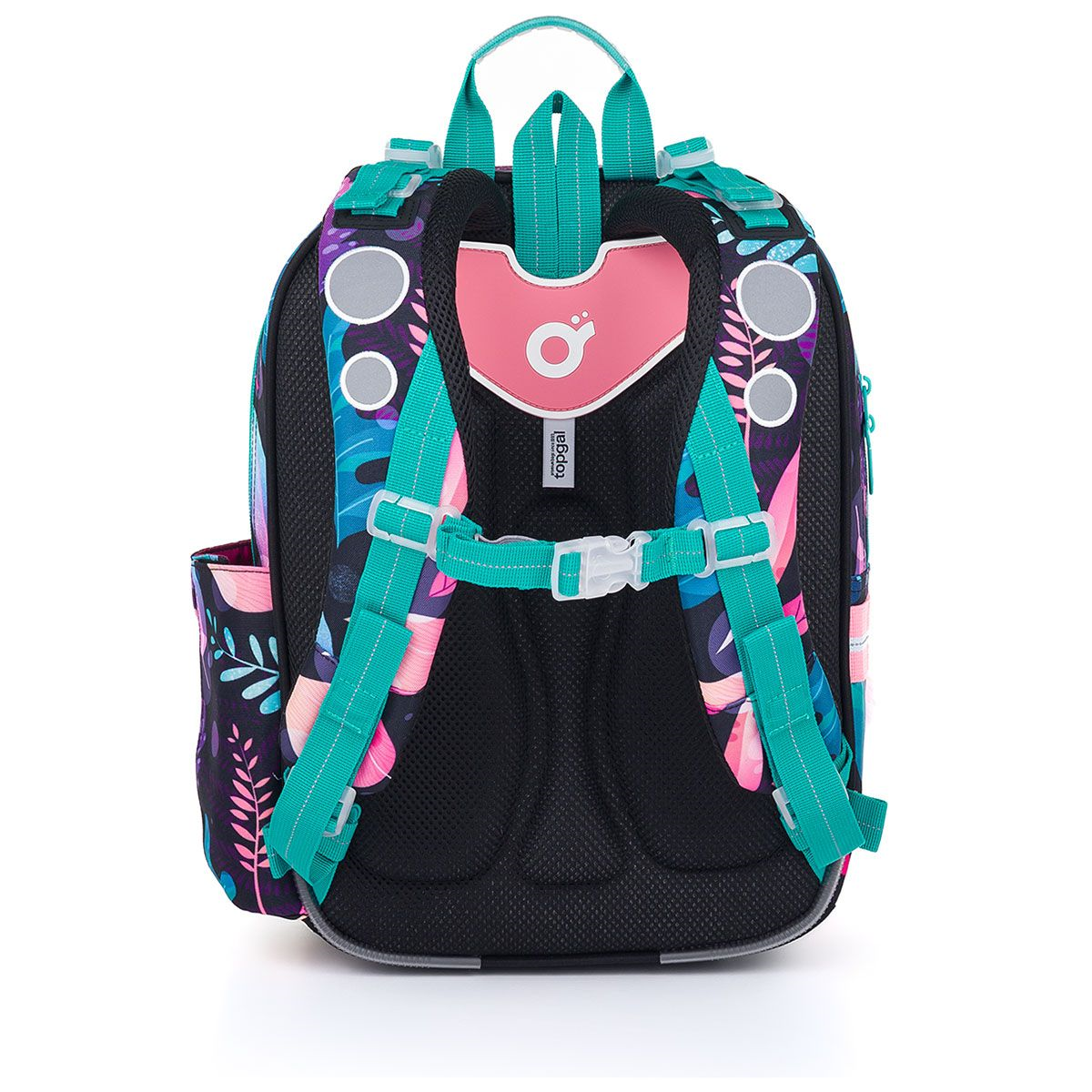 Dve priestranné hlavné komory sú usporiadané s múdrosťou a pokojom. Zadná komora bezpečne pojme najťažšie učebnice a zošity, aby bol chrbtík chránený a každý krok ľahký ako ranná prechádzka lesom. Predná komora ukrýva malé sieťované vrecko na zips a menovku, aby si drobné školské poklady našli svoje bezpečné miesto.
