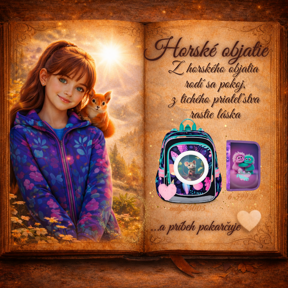 Horské objatie je set pre dievčatko, ktoré nosí vo svojom srdci jemnosť, zvedavosť aj kúsok rozprávkového sveta. Pre tie školské dni, ktoré nemusia byť len povinnosťou, ale môžu byť aj tichým objavovaním krásy, radosti a vlastnej vnútornej sily. ✨