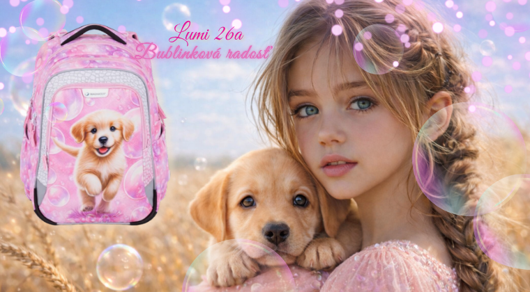 Bagmaster Lumi 26A – dievčenský školský batoh s roztomilým psíkom 🐶